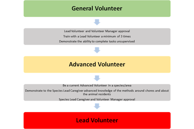 Volunteer levels for Farm, Kitty City, and Healing Barn: